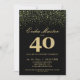 Oro brillos negros invitaciones 40. Cumpleaños