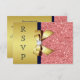 Tarjetas de RSVP personalizadas y elegantes de oro, coral y azul marino con hermosos lentejuelas, lazos y cintas impresos brillantes y bonitos diamantes joyas brillantes en un fondo de gradiente dorado glamuroso. POR FAVOR TOME NOTA: Estos son gráficos impresos planos, sin partes elevadas. Si necesita ayuda para personalizar su producto, por favor contácteme a través de mi tienda. Estaré encantado de ayudar. Tengo productos a juego para bodas en mi tienda. Copie y pegue este enlace en su navegador para ver la colección de bodas completa: