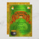 Invitación festiva verde y dorada a la fiesta del Día de San Patricio que incluye una olla de oro, cuatro trébol de hojas, naranjas, globos verdes y blancos, cerveza verde y shamrock para dar un verdadero impulso a tus celebraciones del Día de San Patricio para el 17 de marzo. Todos los detalles se pueden personalizar para que se adapten a cualquier tipo de fiesta, como por ejemplo los cumpleaños o las invitaciones a bodas irlandesas (por ejemplo).