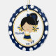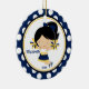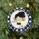 El sistema lindo anticuado del ornamento del navidad del chica de la animadora que animaba azul y amarilla en una polca azul y blanca punteó el fondo. Un regalo del navidad de la maravilla seguro que se atesorará durante muchos años para venir.
