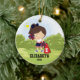 Personalice el ornamento lindo anticuado del navidad del chica de la animadora que anima triguena roja y azul fijado en una hierba con el fondo del árbol. Anime las características del ornamento una animadora linda que lleva a cabo poms del pom con un megáfono. Un regalo del navidad de la maravilla seguro que se atesorará durante muchos años para venir.