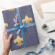 Oro elegante y elegante y papel de embalaje azul de la flor de lis. Ofrece una flor de lis azul del color y del oro del fondo de la pizarra por todo modelo con la flor de lis coloreada de oro sólida dispersada. ¡Productos de coordinación del hallazgo en nuestra tienda de Zazzle!