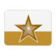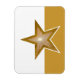 Diseño moderno con una estrella dorada y blanca "brillante" sobre un fondo blanco y amarillo oscuro. Nevera imán con un diseño de personalizable dorado y blanco para que puedas personalizar con tu propio texto, imágenes e ideas. Tenga en cuenta que se trata de una imagen impresa creada con fotografías originales y técnicas digitales, que no brilla ni contiene chispas reales.