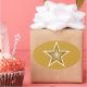 Diseño moderno con una estrella dorada y blanca en un fondo amarillo. Pegatina con un diseño de personalizable para que usted pueda personalizar con su propio texto, imágenes e ideas. Tenga en cuenta que se trata de una imagen impresa creada con fotografías originales y técnicas digitales. No brilla ni contiene chispas reales.