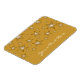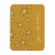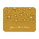 Diseño moderno con estrellas doradas y blancas en un fondo amarillo oscuro. Nevera imán con un diseño de personalizable para que puedas personalizar con tu propio texto, imágenes e ideas. Tenga en cuenta que se trata de una imagen impresa creada con fotografías originales y técnicas digitales, que no brilla ni contiene chispas reales.