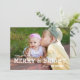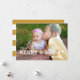 El texto intrépido moderno cubrió la tarjeta de felicitación de la foto del día de fiesta. Diseño de ELKE CLARKE© PARA MONOGRAMGALLERY. Los saludos del día de fiesta sus amados se hacen fáciles con este versátil, la tarjeta simple de la foto del día de fiesta con las palabras "mayo sus días sea feliz y brillante." escrito en una combinación de texto de la fuente de la escritura y del bloque cubrió sobre su foto de familia preferida. Substituya la foto de la muestra por sus la propia. El oro y la línea rayada blanca modelo encendido apoyan de tarjeta pueden ser suprimidos. Otro colorea en tienda o a petición disponible.