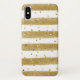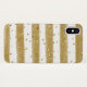 Este moderno y moderno estuche de Relieve metalizado de oro simulado y teléfono celular a rayas blancas simuló un confeti de oro. Añade tu propio texto si quieres que sea personalizado.