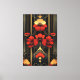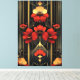 Experimente el audaz drama Art Deco con este patrón único. Una forma geométrica central de oro irradia hacia arriba y hacia afuera, ramificándose en tres secciones distintas, cada una con flores rojas y oro Art Deco vibrantes. Una flor rojiza y dorada llamativa se encuentra también en el corazón de este motivo radiante central, con elementos florales similares que adornan ambas esquinas del fondo. Las líneas doradas rectas se elevan a la parte superior, mejorando la estructura dinámica frente a una sofisticada mezcla de negro y gris en el fondo. Este diseño es una mezcla cautivadora de inspiración natural y geometría Art Deco icónica, perfecta para hacer una declaración glamurosa.