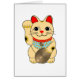 El oro Maneki Neko es un símbolo japonés para la buena suerte y la riqueza. Éste particular aumenta su brazo derecho para tentar el dinero.
