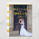 ¡Primeras Nochebuena recién casadas! Envíe sus saludos navideños como marido y mujer con esta hermosa tarjeta fotográfica contemporánea "alegre y casada" en escritura dorada, un tipo de letra clásico, como una tipografía con la foto de su boda. Elke Clarke © Relieve metalizado dorado (efecto de foto impreso) y rayas blancas en la parte posterior. Más colores y estilos disponibles en nuestra tienda. www.zazzle.com/epclarke.