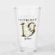 Feliz cumpleaños 19. 19 años. Etiqueta metálica dorada