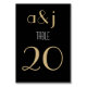Oro negro Art Deco | Tarjetas de número de tabla con sus iniciales de novia y novio.
