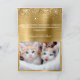 El mensaje de texto dice "Nuestra primera Navidad como señor y señora" con su año de aniversario. Cambiar el texto para otros años de aniversario como pareja casada. Personalizar el guión de caligrafía sofisticada y el estilo de letra moderno. Purpurina de oro brillante y Relieve metalizado oscuro y brillante en el fondo. Añade dos de tus propias fotos para crear tu propia nueva tarjeta de vacaciones de fotos familiares. Compruebe la opción para eliminar el crédito de diseño en la parte posterior.