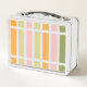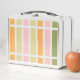 Clásica, a rayas de moda, en tonos naranja, rosa, verde y tostado.