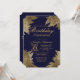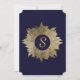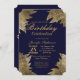 Diseño sencillo, moderno y elegante de color dorado con forma de hoja dibujada en azul marino, invitaciones para fiestas de cumpleaños. Este diseño clásico y sofisticado es perfecto para la persona de cumpleaños elegante, elegante y de moda. Personalice con su propio mensaje en el anverso y monograma personalizado en la parte posterior. Todo el diseño de impresión fotográfica