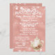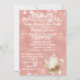 La fiesta de bienvenida al bebé moderna, fiesta del té de moda invita con un rosa, esquema color de rosa del oro lee a la "fiesta del té de Baby Shower" en el top en la moda, letras de la escritura. Personalizado con nombre del invitado de honor en estilo a juego de las letras. Capítulo con las volutas elegantes, blancas. Fondo color de rosa de moda, falso del efecto metalizado de oro con las luces blancas grandes del bokeh dispersadas en la parte superior e inferiores. Una acuarela, tetera color de rosa floral de China del estilo del vintage está en la parte inferior. La información personalizada de la ducha de la fiesta del té, incluyendo los detalles de RSVP y la información del registro de la tienda se imprime en las letras blancas abajo. La parte posterior tiene falso efecto metalizado de oro color de rosa a juego con la frontera blanca del bokeh en la parte superior y la parte inferior. La ducha elegante de la niña invita a listo para ser personalizado con sus propios detalles de la fiesta del té.