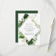 Elegantes y elegantes tarjetas de boda con detalles bodas rodeadas por un marco geométrico de hojas de monstera de color agua y Relieve metalizado de oro falso y follaje verde. Personalice la tarjeta agregando información importante, como detalles de la reserva de alojamiento, etc.