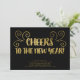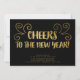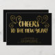 Anda con estilo en el año nuevo con esta invitación negra y (falsa) de Año Nuevo. Este diseño tipográfico presenta la frase "Saludos al Año Nuevo" en letra falsa con letras de pincel dorado, contra un sólido fondo negro. Los detalles de su fiesta están al final de la invitación en oro.