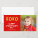 Tarjeta fotográfica El día de San Valentín XOXO Gold Moderno de moda. Diseño de tipografía audaz en un fondo de color sólido rojo. El purpurina de oro xoxo es sólo un efecto fotográfico impreso y no un purpurina real.
