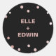 Estos sellos para sobres rosas de boda dorado y glam negro son perfectos para un boda sofisticado o nocturno. El diseño está decorado con un bonito Relieve metalizado de oro falso rosa sobre un fondo negro que le da un aspecto llamativo y brillante. Personalice la etiqueta con los nombres de la novia y del novio. Nota: Este diseño no tiene Relieve metalizado de oro rosa real. Es un gráfico de alta calidad hecho para que parezca oro rosa sucio. Diseñado con cuidado por Miriam en Fresh & Yummy Paperie. Por favor, contáctame con cualquier personalización de diseño que necesite. Para coordinar artículos, por favor visite mi tienda Zazzle: