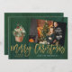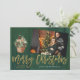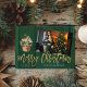 Envíe sus Navidades con estilo con su tarjeta de Navidades de fotos Gold & Green Wood Merry Christmas One Photo Card.