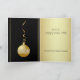 Tarjeta de felicitación corporativa elegante del navidad hecha en un dorado, en la mitad superior de la tarjeta y del negro, en la parte inferior. Los gráficos de un ornamento dorado del arco y de la bola del navidad, adornan el centro. El interior de la tarjeta también se adorna para hacer juego el frente. Personalice el texto negro para adaptarse a sus necesidades del día de fiesta de la compañía.
