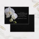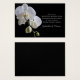 Devuélvate a tu gran día con la tarjeta de favores de la boda blanca de la bonito. Afirma que, en lugar de un favor tradicional del partido, se ha hecho una donación en su nombre a la caridad. Personalizar la tarjeta agregando en nombre de tu organización benéfica favorita y los nombres personales de la novia y el novio. Esta elegante tarjeta personalizado florida de bienvenida de boda incluye una fotografía floral de una flor de orquídea floral blanca phalaenopsis sobre un fondo negro.