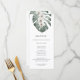 Elegante menú para una boda tropical, de playa o de destino, con un diseño sencillo que incluye bonitas orquídeas blancas sobre una frondosa hoja de Monstera en tonos suaves. Se incluye una plantilla de texto para personalizar con los elementos de menú que desee. Si desea añadir o eliminar líneas de texto, seleccione "hacer clic en el personalizar más adelante", que abrirá la plantilla de diseño para permitir la edición adicional, recentralizando el texto, etc.