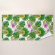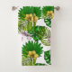 Orquídeas y hojas de palma, rosas, amarillas, verd
