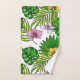 Diseño tropical de mano con orquídeas, hojas de palma y hojas de monstera