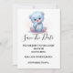 Anuncia tu celebración de la manera más dulce con esta invitación de "Save the Date" del Oso Azul para Niño. Con un diseño de osito de peluche adorable en tonos azules suaves, esta invitación es perfecta para celebraciones de baby shower de niño, baby sprinkles y celebraciones con tema de osos.