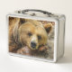 Esta caja de almuerzo tiene un oso retratado en ella.