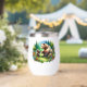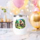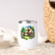 Tumbler personalizado. Un oso mami jugando con su bebe oso afuera en un campo de hierba y flores con un fondo de pino. Estilo acuarela ai art.