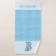 El nombre de tu hijo en su propia toalla de playa con huellas de gingham a cuadros y de yeso azul y blanco, con un oso azul y la letra B para su monograma.