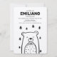 El diseño minimalista presenta a un oso con corbata de arco en el bosque. Personalizar estas invitaciones para cualquier evento. Impreso en papel liso de kraft marrón. ©2021 Copyright, Dio Pérez