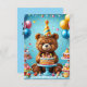 Oso de cumpleaños con pastel y globos
