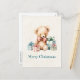 Postal de navidades con un bonito ilustracion con un osito de peluche de estilo victoriano. Llevando un lujoso arco rojo. Está decorado con un bonito estilo vintage a la antigua. La navidad roja y azul pastel rodea a este oso de buen corazón.