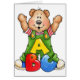 Un oso de peluche que tiene la letra ABC delante de él
