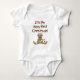 Candy cane a rayas de un niño texto que dice "¡Es mi primera Navidad!" y un oso de peluche vestido con corbatas de reno aparecen en las primeras camisetas de Navidad, trajes de ropa y bolsas de té del bebé.