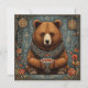Un oso majestuoso sentado tranquilamente, adornado con un bonito collar. En él se encuentra un bol de bayas rojas, rodeado de decoraciones florales y de varios símbolos en el fondo. La obra combina elementos de la naturaleza con símbolos místicos, creando una atmósfera cautivadora y serena.