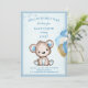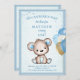 Envíen estos adorables, primeros cumpleaños para diseños de niños con un lindo oso pardo, confeti azul y globos azul/oro/blanco sobre una manta azul bebé con los brazos cocidos. Plantillas creadas para usted.