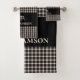 Disfrute de esta manta rústica, de color crema, blanca y negra, con una plantilla de monograma para personalizarla con una silueta de oso hecha en la misma manta.