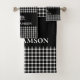 Disfrute de esta manta rústica, blanca y negra con una plantilla de monograma para personalizarla con una silueta de oso hecha en la misma manta.