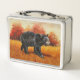 Un osito negro adorable dando un paseo por un campo de follaje de colores vivos de otoño.