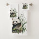 Acuarela lindo oso panda en hojas de bambú con un cachorro sobre un fondo blanco.