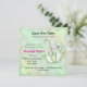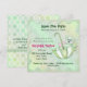 Invitación de baby shower niña o niño con adorable osito de peluche mint montado en un paraguas, puntos grandes y otros toques especiales. Personalice con su información.