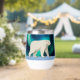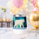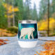 Un oso polar lindo (Ursus maritimus), hecho en un estilo simple, primitivo o ingenuo, camina sobre el hielo polar, los Aurora Borealis (aurora boreal) brillan brillantemente en el fondo. Personalizar agregando su propio texto.