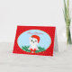 Oso polar de Navidad lindo sobre azul claro y rojo Tarjeta de vacaciones.