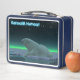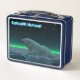 Un momento pacífico en la larga noche ártica. Un oso polar descansa en el borde de una zona abierta en el hielo de la manada. Las auroras boreales brillan a lo lejos; las estrellas brillantes brillan sobre sus cabezas. El texto que dice "Kalallit Nunaat", el nombre de la isla en Kalaallisut, el dialecto principal, aparece en azul y blanco resplandeciente. Los osos polares están en peligro. ¿Cuánto tiempo más podrán ocurrir escenas como esta? Por favor, ayuden a salvar a los osos polares de la extinción.