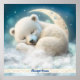Crea una atmósfera serena y mágica en cualquier habitación con un poster personalizado con un oso polar lindo durmiendo tranquilamente sobre la luna en nubes. Esta impresión única y de personalizable es perfecta para cualquier habitación infantil, habitación o cualquier espacio que necesite un toque de tranquilidad. El oso adorable, que duerme sobre una luna blanca con un diseño de nubes, es perfecto para una guardería. Los colores alegrarán cualquier habitación. Esta obra de arte es tan dulce y sería perfecta para un regalo de bienvenida, decoración de guardería o algo especial para tu pequeño. Los colores son suaves y tranquilizadores, y el oso es simplemente adorable.